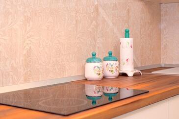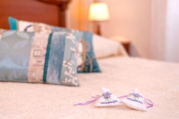 Appartamento può accogliere 7 ospiti. I letti sono disposti nelle camere da letto che sono 3, su 92m2. Gli ospiti hanno a disposizione il proprio balcone per godere delle calde serate estive. Dall'appartamento si gode di una vista sul mare. Si può preparare il cibo utilizzando il barbecue comune. Durante il soggiorno gli ospiti possono utilizzare la piscina comune.