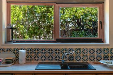 Casa può accogliere 8 ospiti. I letti sono disposti nelle camere da letto che sono 4, su 125m2. Gli ospiti hanno a disposizione il proprio terrazzo per godere nelle calde serate estive. Dalla casa si gode di una vista sul mare. Per il piacere totale e il relax c'è il barbecue privato solo per gli ospiti di quest'alloggio. Durante il soggiorno gli ospiti si possono rilassare nella piscina privata.