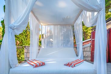 Casa può accogliere 8 ospiti. I letti sono disposti nelle camere da letto che sono 4, su 125m2. Gli ospiti hanno a disposizione il proprio terrazzo per godere nelle calde serate estive. Dalla casa si gode di una vista sul mare. Per il piacere totale e il relax c'è il barbecue privato solo per gli ospiti di quest'alloggio. Durante il soggiorno gli ospiti si possono rilassare nella piscina privata.