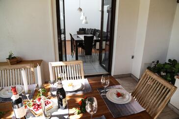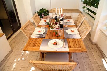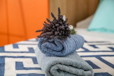Appartamento può accogliere 6 ospiti. I letti sono disposti nelle camere da letto che sono 2, e nella camera di soggiorno, su 50m2. Gli ospiti hanno a disposizione il proprio terrazzo per godere nelle calde serate estive. Dall'appartamento si gode di una vista sul mare. Per il piacere totale e il relax c'è il barbecue privato solo per gli ospiti di quest'alloggio. Nell'unità di alloggio si possono portare gli animali domestici senza alcun pagamento supplementare.