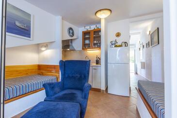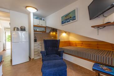 Appartamento può accogliere 4 ospiti. I letti sono disposti nelle camere da letto che sono 1, e nella camera di soggiorno, su 28m2. Gli ospiti hanno a disposizione il proprio terrazzo per godere nelle calde serate estive. Dall'appartamento si gode di una vista sul mare. Si può preparare il cibo utilizzando il barbecue comune. Arrivati nell'unità d'alloggio i clienti devono pagare un deposito (il prezzo è indicato sul sito).