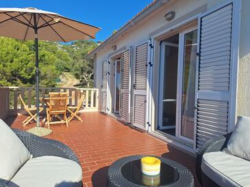 Casa può accogliere 4 ospiti. I letti sono disposti nelle camere da letto che sono 2, su 61m2. Gli ospiti hanno a disposizione il proprio terrazzo per godere nelle calde serate estive. Dalla casa si gode di una vista sul mare. Si può preparare il cibo utilizzando il barbecue comune. Le stanze dell'unità d'alloggio non sono connesse in un insieme.