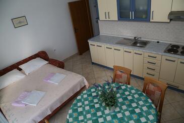 Appartamento può accogliere 4 ospiti. I letti sono disposti nelle camere da letto che sono 1, e nella sala da pranzo, su 33m2. Gli ospiti hanno a disposizione il proprio terrazzo per godere nelle calde serate estive. Dall'appartamento si gode di una vista sul mare. Si può preparare il cibo utilizzando il barbecue comune.