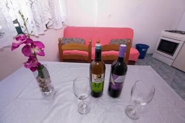 Appartamento può accogliere 5 ospiti. I letti sono disposti nelle camere da letto che sono 2, e nella sala da pranzo, su 37m2. Gli ospiti hanno a disposizione il proprio terrazzo per godere nelle calde serate estive. Dall'appartamento si gode di una vista sul mare. Si può preparare il cibo utilizzando il barbecue comune. Dalla camera da letto si entra in altre stanze dell'unità d'alloggio.