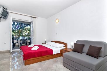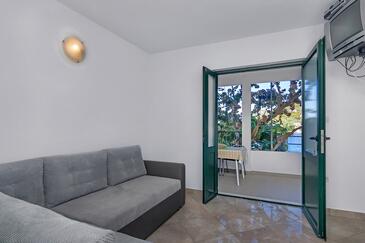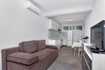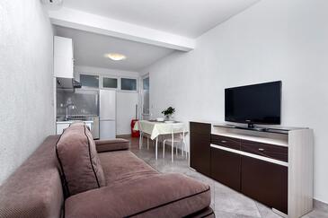 Appartamento può accogliere 5 ospiti. I letti sono disposti nelle camere da letto che sono 1, e nella camera di soggiorno, su 36m2. Gli ospiti hanno a disposizione il proprio terrazzo per godere nelle calde serate estive. Dall'appartamento si gode di una vista sul mare. Si può preparare il cibo utilizzando il barbecue comune. Nell'unità di alloggio si possono portare gli animali domestici con un pagamento supplementare.