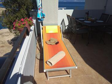 Appartamento può accogliere 3 ospiti. I letti sono disposti nelle camere da letto che sono 1, e nella camera di soggiorno, su 27m2. Gli ospiti hanno a disposizione il proprio terrazzo per godere nelle calde serate estive. Dall'appartamento si gode di una vista sul mare. Si può preparare il cibo utilizzando il barbecue comune. Nell'unità di alloggio si possono portare gli animali domestici senza alcun pagamento supplementare.