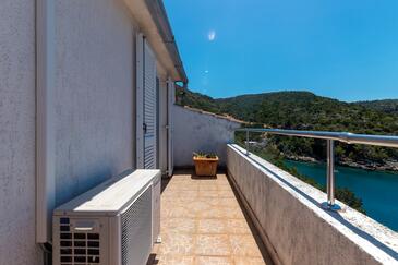 Appartamento può accogliere 5 ospiti. I letti sono disposti nelle camere da letto che sono 2, su 43m2. Gli ospiti hanno a disposizione il proprio terrazzo per godere nelle calde serate estive. Dall'appartamento si gode di una vista sul mare. Si può preparare il cibo utilizzando il barbecue comune. Nell'unità di alloggio si possono portare gli animali domestici senza alcun pagamento supplementare.