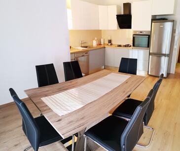 Appartamento può accogliere 6 ospiti. I letti sono disposti nelle camere da letto che sono 2, e nella camera di soggiorno, su 81m2. Gli ospiti hanno a disposizione il proprio balcone per godere delle calde serate estive. Si può preparare il cibo utilizzando il barbecue comune.