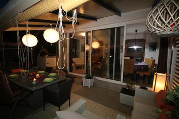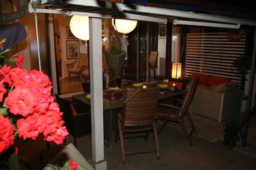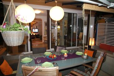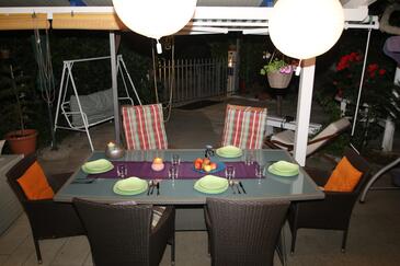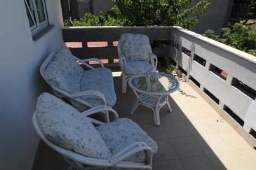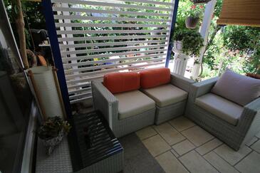 Casa può accogliere 5 ospiti. I letti sono disposti nelle camere da letto che sono 3, su 90m2. Gli ospiti hanno a disposizione il proprio terrazzo per godere nelle calde serate estive. Dalla casa si gode di una vista sul mare. Per il piacere totale e il relax c'è il barbecue privato solo per gli ospiti di quest'alloggio. Nell'unità di alloggio si possono portare gli animali domestici con un pagamento supplementare. Arrivati nell'unità d'alloggio i clienti devono pagare un deposito (il prezzo è indicato sul sito).