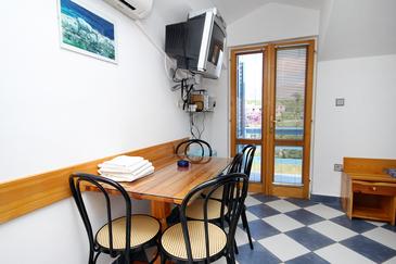 Appartamento può accogliere 4 ospiti. I letti sono disposti nelle camere da letto che sono 1, e nella camera di soggiorno, su 32m2. Gli ospiti hanno a disposizione il proprio balcone per godere delle calde serate estive. Dall'appartamento si gode di una vista sul mare. Si può preparare il cibo utilizzando il barbecue comune. Nell'unità di alloggio si possono portare gli animali domestici con un pagamento supplementare.