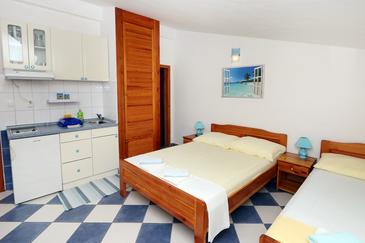 Appartamento può accogliere 4 ospiti. I letti sono disposti nelle camere da letto che sono 1, e nella camera di soggiorno, su 32m2. Gli ospiti hanno a disposizione il proprio balcone per godere delle calde serate estive. Dall'appartamento si gode di una vista sul mare. Si può preparare il cibo utilizzando il barbecue comune. Nell'unità di alloggio si possono portare gli animali domestici con un pagamento supplementare.