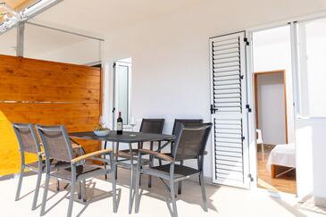 Appartamento può accogliere 4 ospiti. I letti sono disposti nelle camere da letto che sono 2, su 29m2. Gli ospiti hanno a disposizione il proprio terrazzo per godere nelle calde serate estive. Dall'appartamento si gode di una vista sul mare. Si può preparare il cibo utilizzando il barbecue comune.