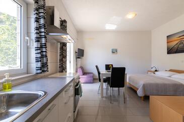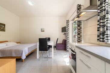 Appartamento può accogliere 4 ospiti. I letti sono disposti nelle camere da letto che sono 1, e nella camera di soggiorno, su 40m2. Gli ospiti hanno a disposizione il proprio terrazzo per godere nelle calde serate estive. Dall'appartamento si gode di una vista sul mare. Si può preparare il cibo utilizzando il barbecue comune.