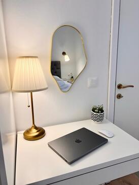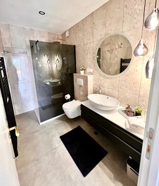 Appartamento può accogliere 8 ospiti. I letti sono disposti nelle camere da letto che sono 4, su 107m2. Gli ospiti hanno a disposizione il proprio terrazzo per godere nelle calde serate estive. Dall'appartamento si gode di una vista sul mare. Per il piacere totale e il relax c'è il barbecue privato solo per gli ospiti di quest'alloggio. Durante il soggiorno gli ospiti si possono rilassare nella piscina privata.