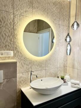 Appartamento può accogliere 8 ospiti. I letti sono disposti nelle camere da letto che sono 4, su 107m2. Gli ospiti hanno a disposizione il proprio terrazzo per godere nelle calde serate estive. Dall'appartamento si gode di una vista sul mare. Per il piacere totale e il relax c'è il barbecue privato solo per gli ospiti di quest'alloggio. Durante il soggiorno gli ospiti si possono rilassare nella piscina privata.