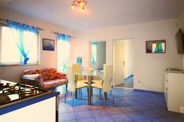 Appartamento può accogliere 4 ospiti. I letti sono disposti nelle camere da letto che sono 2, su 41m2. Gli ospiti hanno a disposizione il proprio balcone per godere delle calde serate estive. Dall'appartamento si gode di una vista sul mare. Per il piacere totale e il relax c'è il barbecue privato solo per gli ospiti di quest'alloggio. Nell'unità di alloggio si possono portare gli animali domestici con un pagamento supplementare. L'unità di alloggio prenotata utilizza il terazzo in comune.