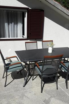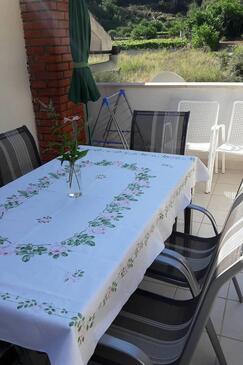 Appartamento può accogliere 8 ospiti. I letti sono disposti nelle camere da letto che sono 3, su 79m2. Gli ospiti hanno a disposizione il proprio terrazzo per godere nelle calde serate estive. Dall'appartamento si gode di una vista sul mare. Si può preparare il cibo utilizzando il barbecue comune.