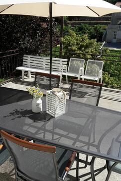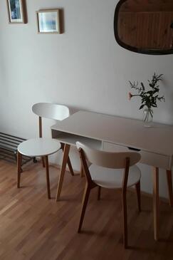 Appartamento può accogliere 8 ospiti. I letti sono disposti nelle camere da letto che sono 3, su 79m2. Gli ospiti hanno a disposizione il proprio terrazzo per godere nelle calde serate estive. Dall'appartamento si gode di una vista sul mare. Si può preparare il cibo utilizzando il barbecue comune.