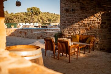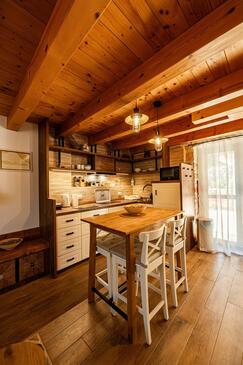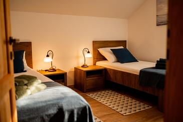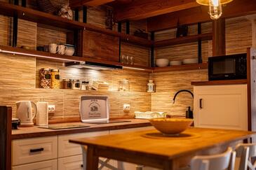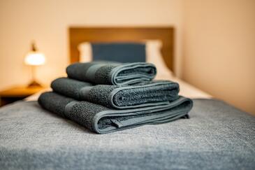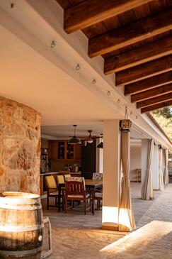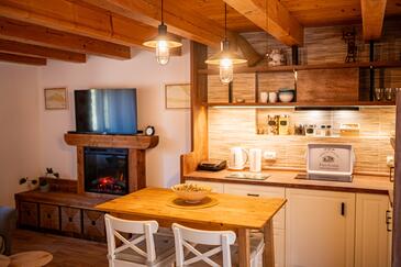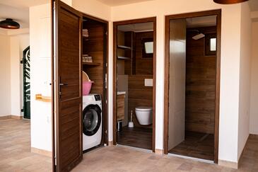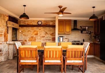 Casa può accogliere 8 ospiti. I letti sono disposti nelle camere da letto che sono 3, e nella camera di soggiorno, su 80m2. Gli ospiti hanno a disposizione il proprio terrazzo per godere nelle calde serate estive. Per il piacere totale e il relax c'è il barbecue privato solo per gli ospiti di quest'alloggio. Durante il soggiorno gli ospiti si possono rilassare nella piscina privata. Nell'unità di alloggio si possono portare gli animali domestici con un pagamento supplementare. Le stanze dell'unità d'alloggio non sono connesse in un insieme.
