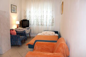 Appartamento può accogliere 7 ospiti. I letti sono disposti nelle camere da letto che sono 3, e nella camera di soggiorno, su 77m2. Gli ospiti hanno a disposizione il proprio balcone per godere delle calde serate estive. Dall'appartamento si gode di una vista sul mare. Si può preparare il cibo utilizzando il barbecue comune. Nell'unità di alloggio si possono portare gli animali domestici con un pagamento supplementare.