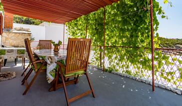Casa può accogliere 6 ospiti. I letti sono disposti nelle camere da letto che sono 3, su 51m2. Gli ospiti hanno a disposizione il proprio terrazzo per godere nelle calde serate estive. Dalla casa si gode di una vista sul mare. Per il piacere totale e il relax c'è il barbecue privato solo per gli ospiti di quest'alloggio.