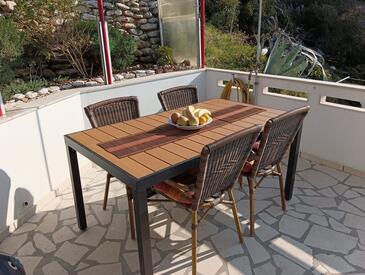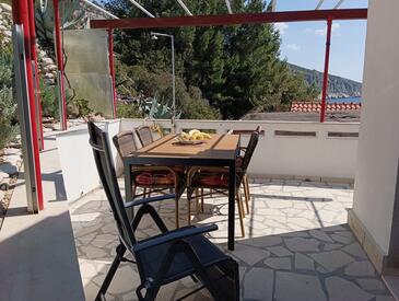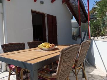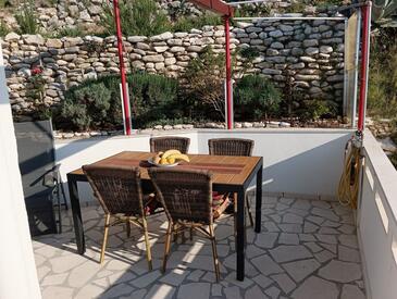 Appartamento può accogliere 4 ospiti. I letti sono disposti nelle camere da letto che sono 2, su 50m2. Gli ospiti hanno a disposizione il proprio terrazzo per godere nelle calde serate estive. Dall'appartamento si gode di una vista sul mare. Si può preparare il cibo utilizzando il barbecue comune.