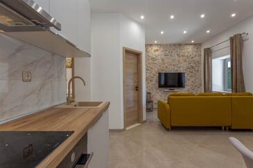 Appartamento può accogliere 4 ospiti. I letti sono disposti nelle camere da letto che sono 2, su 48m2. Gli ospiti hanno a disposizione il proprio terrazzo per godere nelle calde serate estive. Dall'appartamento si gode di una vista sul mare. Si può preparare il cibo utilizzando il barbecue comune.