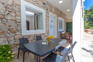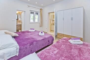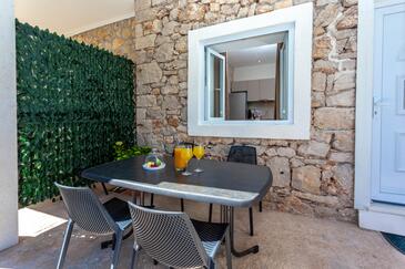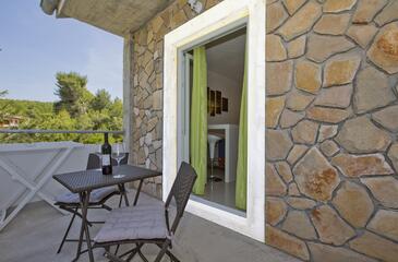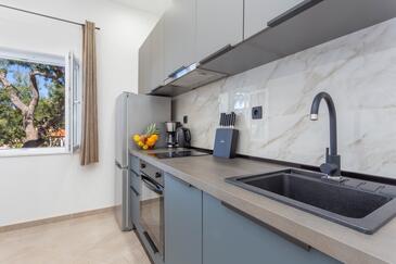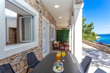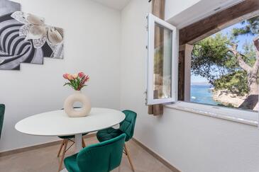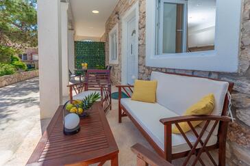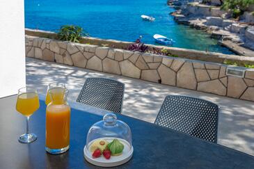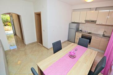 Appartamento può accogliere 4 ospiti. I letti sono disposti nelle camere da letto che sono 2, su 48m2. Gli ospiti hanno a disposizione il proprio terrazzo per godere nelle calde serate estive. Dall'appartamento si gode di una vista sul mare. Si può preparare il cibo utilizzando il barbecue comune.