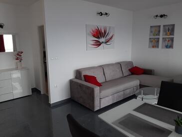 Appartamento può accogliere 6 ospiti. I letti sono disposti nelle camere da letto che sono 2, e nella camera di soggiorno, su 49m2. Gli ospiti hanno a disposizione il proprio terrazzo per godere nelle calde serate estive. Dall'appartamento si gode di una vista sul mare. Per il piacere totale e il relax c'è il barbecue privato solo per gli ospiti di quest'alloggio. Nell'unità di alloggio si possono portare gli animali domestici senza alcun pagamento supplementare.