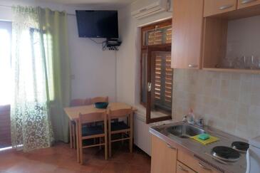 Appartamento può accogliere 4 ospiti. I letti sono disposti nelle camere da letto che sono 1, e nella sala da pranzo, su 28m2. Gli ospiti hanno a disposizione il proprio terrazzo per godere nelle calde serate estive. Dall'appartamento si gode di una vista sul mare. Si può preparare il cibo utilizzando il barbecue comune.