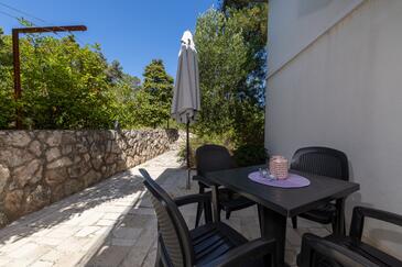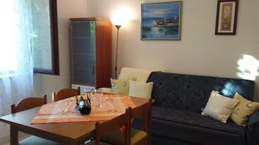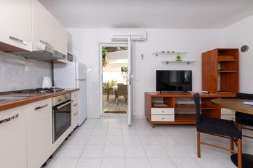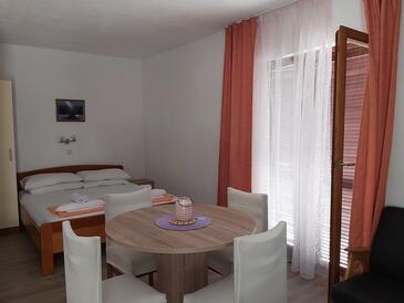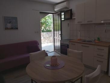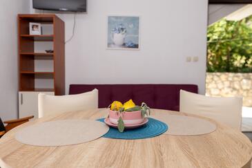 Appartamento può accogliere 5 ospiti. I letti sono disposti nelle camere da letto che sono 2, e nella sala da pranzo, su 43m2. Gli ospiti hanno a disposizione il proprio terrazzo per godere nelle calde serate estive. Dall'appartamento si gode di una vista sul mare. Per il piacere totale e il relax c'è il barbecue privato solo per gli ospiti di quest'alloggio.