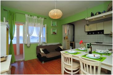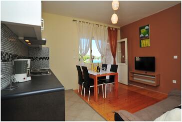 Appartamento può accogliere 6 ospiti. I letti sono disposti nelle camere da letto che sono 2, su 97m2. Gli ospiti hanno a disposizione il proprio terrazzo per godere nelle calde serate estive. Dall'appartamento si gode di una vista sul mare. Per il piacere totale e il relax c'è il barbecue privato solo per gli ospiti di quest'alloggio.