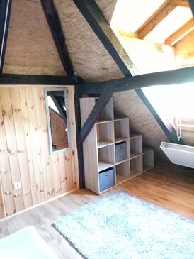 Casa può accogliere 6 ospiti. I letti sono disposti nelle camere da letto che sono 2, e nella camera di soggiorno, su 102m2. Gli ospiti hanno a disposizione il proprio terrazzo per godere nelle calde serate estive. Per il piacere totale e il relax c'è il barbecue privato solo per gli ospiti di quest'alloggio. Durante il soggiorno gli ospiti si possono rilassare nella piscina privata.
