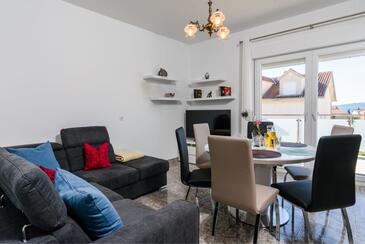 Appartamento può accogliere 6 ospiti. I letti sono disposti nelle camere da letto che sono 3, su 88m2. Gli ospiti hanno a disposizione il proprio terrazzo per godere nelle calde serate estive. Dall'appartamento si gode di una vista sul mare. Si può preparare il cibo utilizzando il barbecue comune.