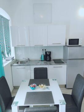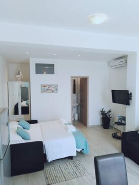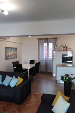 Appartamento può accogliere 6 ospiti. I letti sono disposti nelle camere da letto che sono 2, e nella camera di soggiorno, su 64m2. Gli ospiti hanno a disposizione il proprio terrazzo per godere nelle calde serate estive. Dall'appartamento si gode di una vista sul mare.