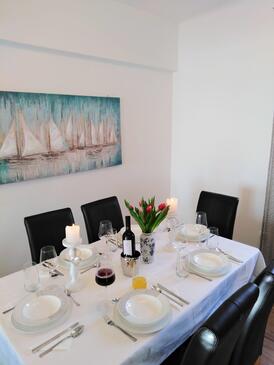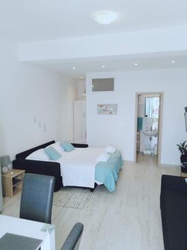 Appartamento può accogliere 6 ospiti. I letti sono disposti nelle camere da letto che sono 2, e nella camera di soggiorno, su 64m2. Gli ospiti hanno a disposizione il proprio terrazzo per godere nelle calde serate estive. Dall'appartamento si gode di una vista sul mare.