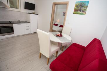 Appartamento può accogliere 4 ospiti. I letti sono disposti nelle camere da letto che sono 1, e nella camera di soggiorno, su 28m2. Gli ospiti hanno a disposizione il proprio terrazzo per godere nelle calde serate estive. Si può preparare il cibo utilizzando il barbecue comune. Altri clienti o proprietari passano per terrazzo dell'unità d'alloggio prenotata.
