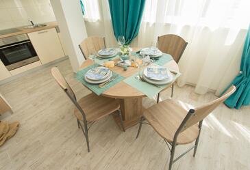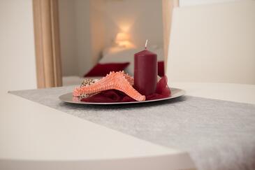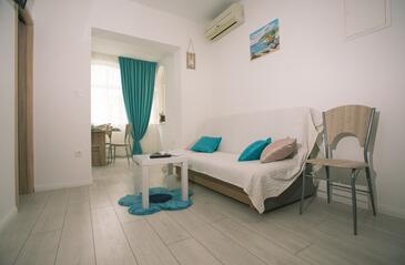Appartamento può accogliere 4 ospiti. I letti sono disposti nelle camere da letto che sono 1, e nella camera di soggiorno, su 28m2. Gli ospiti hanno a disposizione il proprio terrazzo per godere nelle calde serate estive. Si può preparare il cibo utilizzando il barbecue comune. Altri clienti o proprietari passano per terrazzo dell'unità d'alloggio prenotata.