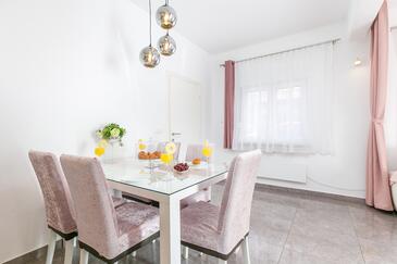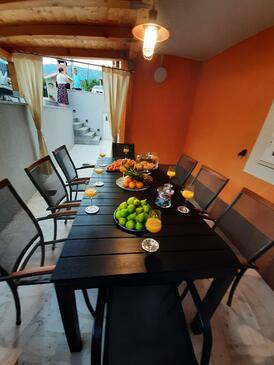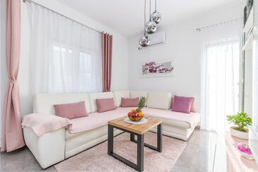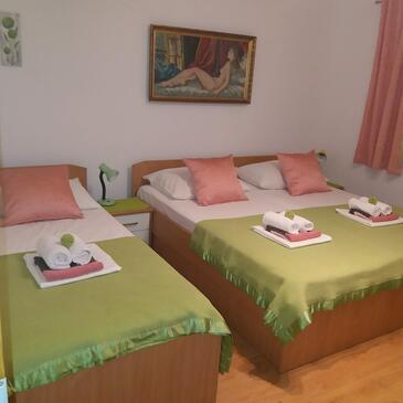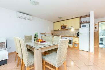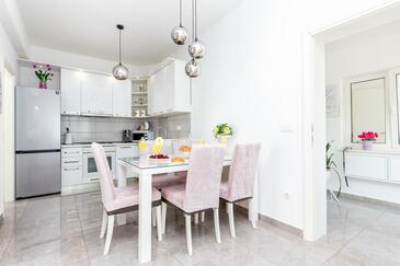 Appartamento può accogliere 8 ospiti. I letti sono disposti nelle camere da letto che sono 3, su 72m2. Gli ospiti hanno a disposizione il proprio terrazzo per godere nelle calde serate estive. Si può preparare il cibo utilizzando il barbecue comune.