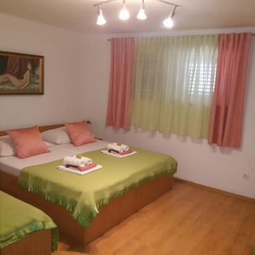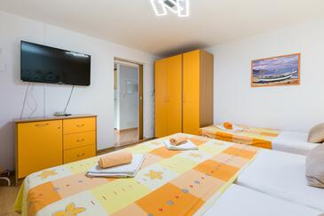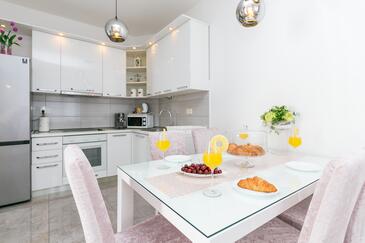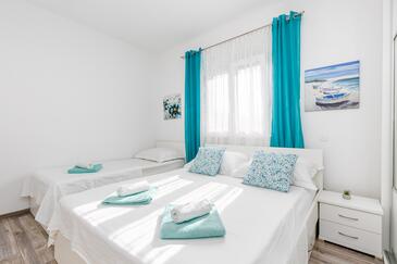 Appartamento può accogliere 8 ospiti. I letti sono disposti nelle camere da letto che sono 3, su 72m2. Gli ospiti hanno a disposizione il proprio terrazzo per godere nelle calde serate estive. Si può preparare il cibo utilizzando il barbecue comune.