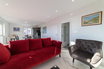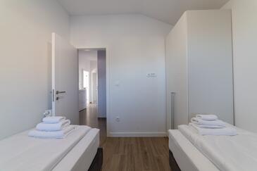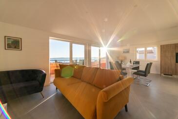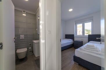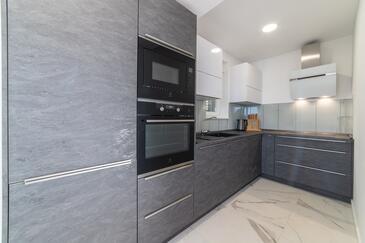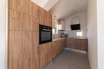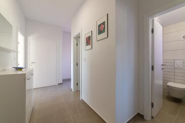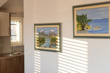 Appartamento può accogliere 4 ospiti. I letti sono disposti nelle camere da letto che sono 2, su 80m2. Gli ospiti hanno a disposizione il proprio terrazzo per godere nelle calde serate estive. Dall'appartamento si gode di una vista sul mare. Si può preparare il cibo utilizzando il barbecue comune.