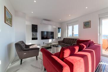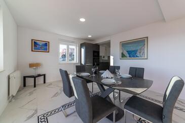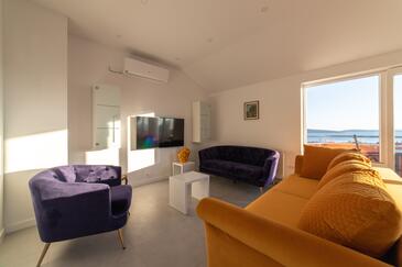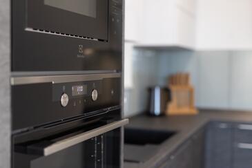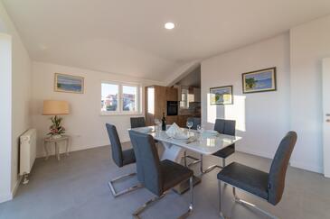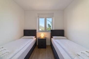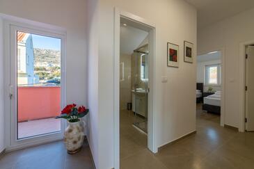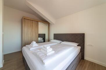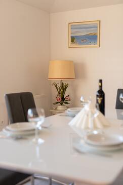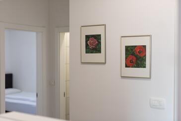 Appartamento può accogliere 4 ospiti. I letti sono disposti nelle camere da letto che sono 2, su 80m2. Gli ospiti hanno a disposizione il proprio terrazzo per godere nelle calde serate estive. Dall'appartamento si gode di una vista sul mare. Si può preparare il cibo utilizzando il barbecue comune.