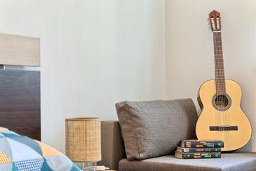 Appartamento può accogliere 4 ospiti. I letti sono disposti nelle camere da letto che sono 2, su 56m2. Gli ospiti hanno a disposizione il proprio balcone per godere delle calde serate estive. Si può preparare il cibo utilizzando il barbecue comune. Durante il soggiorno gli ospiti possono utilizzare la piscina comune.