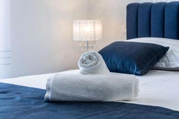 Appartamento può accogliere 6 ospiti. I letti sono disposti nelle camere da letto che sono 2, e nella camera di soggiorno, su 85m2. Gli ospiti hanno a disposizione il proprio balcone per godere delle calde serate estive. Dall'appartamento si gode di una vista sul mare.