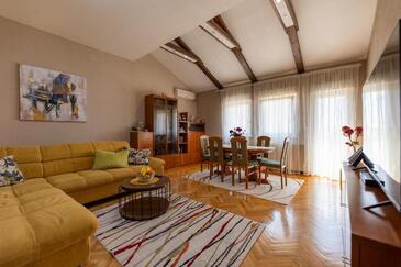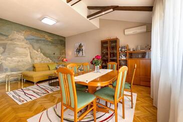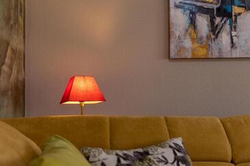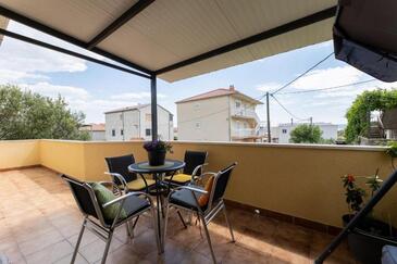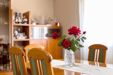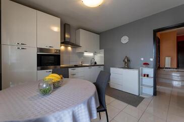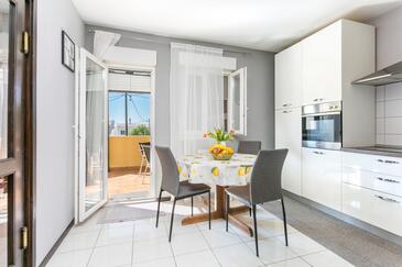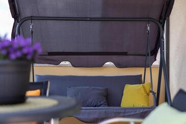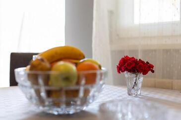 Appartamento può accogliere 5 ospiti. I letti sono disposti nelle camere da letto che sono 2, e nella camera di soggiorno, su 85m2. Gli ospiti hanno a disposizione il proprio terrazzo per godere nelle calde serate estive. Dall'appartamento si gode di una vista sul mare. Si può preparare il cibo utilizzando il barbecue comune.