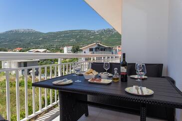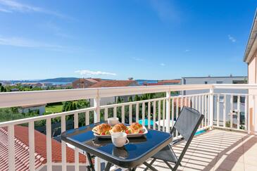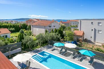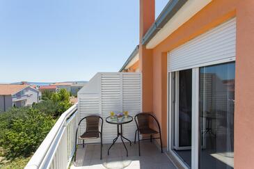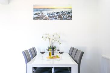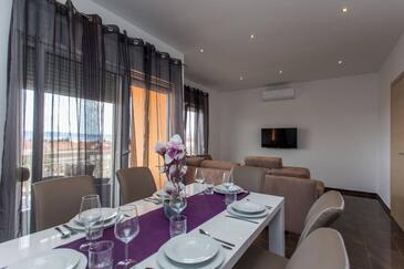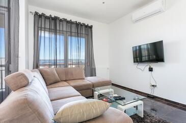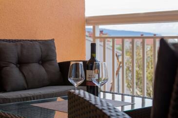 Appartamento può accogliere 6 ospiti. I letti sono disposti nelle camere da letto che sono 2, e nella camera di soggiorno, su 73m2. Gli ospiti hanno a disposizione il proprio terrazzo per godere nelle calde serate estive. Dall'appartamento si gode di una vista sul mare. Si può preparare il cibo utilizzando il barbecue comune. Durante il soggiorno gli ospiti possono utilizzare la piscina comune.