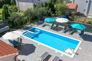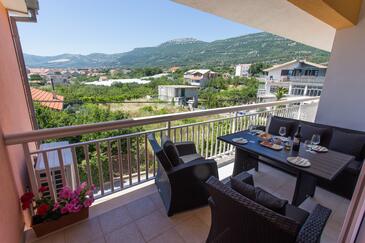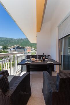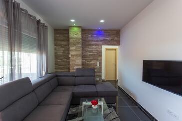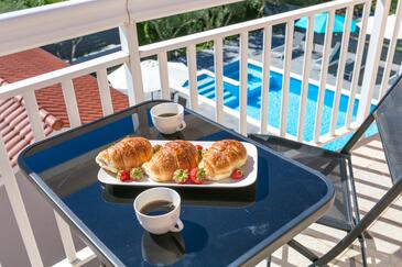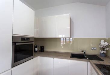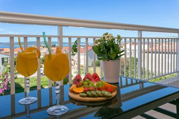 Appartamento può accogliere 6 ospiti. I letti sono disposti nelle camere da letto che sono 2, e nella camera di soggiorno, su 73m2. Gli ospiti hanno a disposizione il proprio terrazzo per godere nelle calde serate estive. Dall'appartamento si gode di una vista sul mare. Si può preparare il cibo utilizzando il barbecue comune. Durante il soggiorno gli ospiti possono utilizzare la piscina comune.