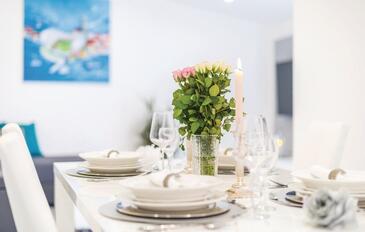 Casa può accogliere 12 ospiti. I letti sono disposti nelle camere da letto che sono 6, su 193m2. Gli ospiti hanno a disposizione il proprio terrazzo per godere nelle calde serate estive. Dalla casa si gode di una vista sul mare. Per il piacere totale e il relax c'è il barbecue privato solo per gli ospiti di quest'alloggio. Durante il soggiorno gli ospiti si possono rilassare nella piscina privata. Arrivati nell'unità d'alloggio i clienti devono pagare un deposito (il prezzo è indicato sul sito).
