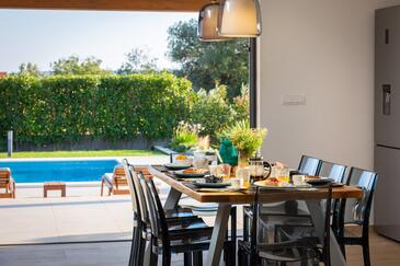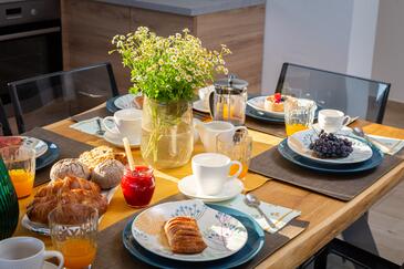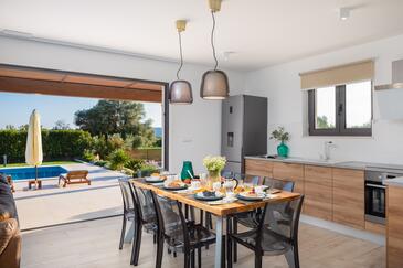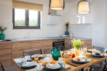 Casa può accogliere 8 ospiti. I letti sono disposti nelle camere da letto che sono 4, su 173m2. Gli ospiti hanno a disposizione il proprio terrazzo per godere nelle calde serate estive. Dalla casa si gode di una vista sul mare. Si può preparare il cibo utilizzando il barbecue comune. Durante il soggiorno gli ospiti si possono rilassare nella piscina privata.