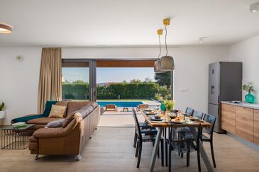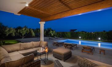 Casa può accogliere 8 ospiti. I letti sono disposti nelle camere da letto che sono 4, su 173m2. Gli ospiti hanno a disposizione il proprio terrazzo per godere nelle calde serate estive. Dalla casa si gode di una vista sul mare. Si può preparare il cibo utilizzando il barbecue comune. Durante il soggiorno gli ospiti si possono rilassare nella piscina privata.